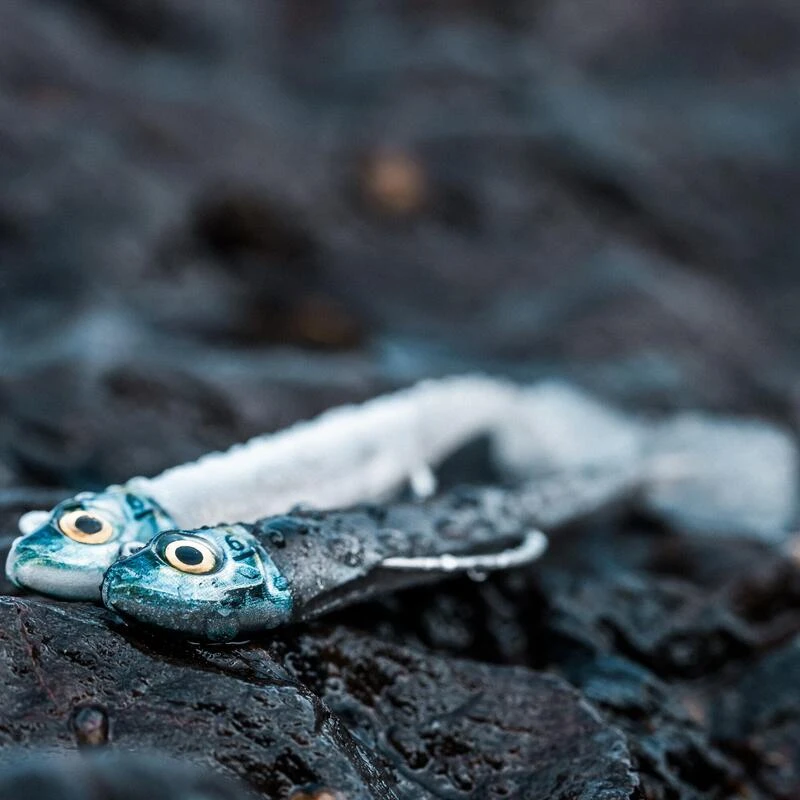 Nous avons développé cette forme d’anchois 3D pour toutes les pêches en lancer-ramener entre deux eaux, près du fond dans les zones peu profonde. La nage de type « Paddle » émet de fortes vibrations grâce au « frétillement » et au balancement de la caudale.
